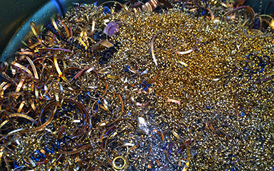 ◆旋盤機などで砲金(青銅)を加工した際にでる屑で、砲金切粉(削粉、切削屑)とも呼ばれます。